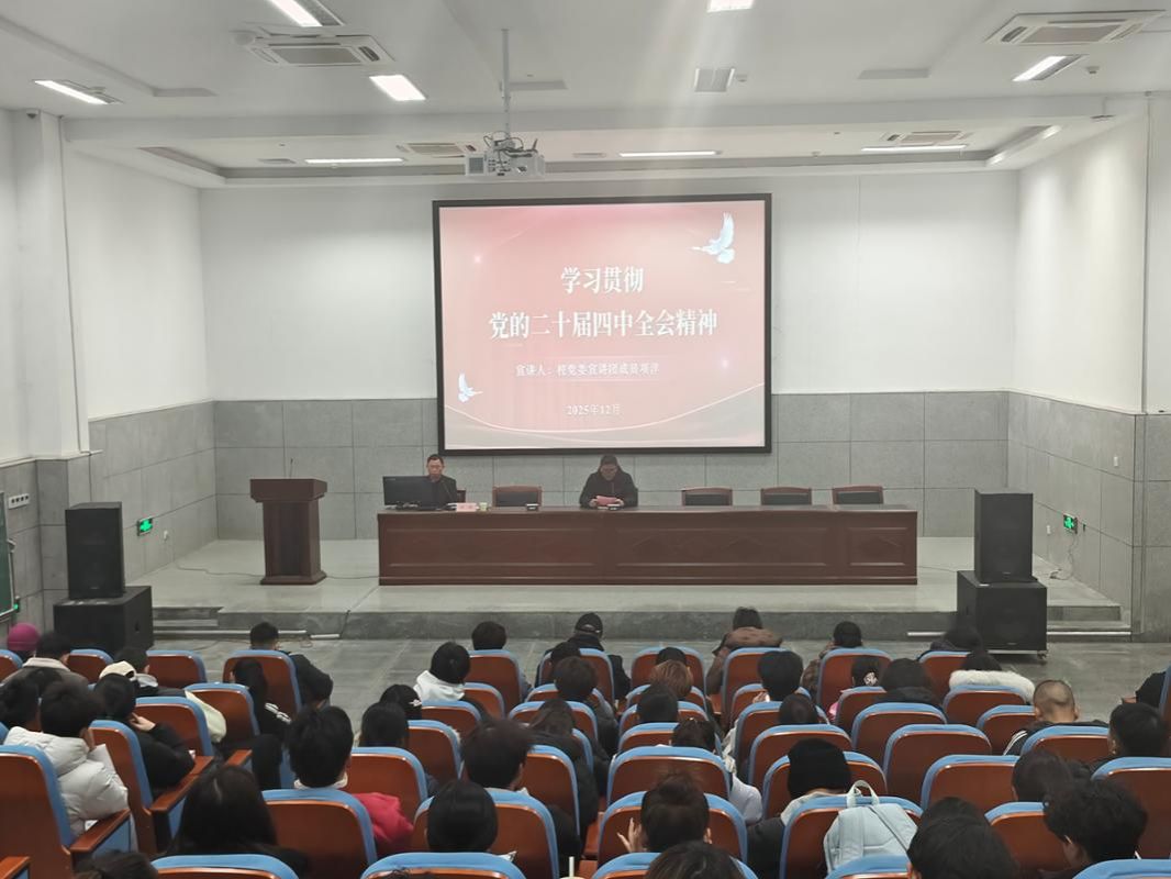 2025年12月3日,体育学院开展党的二十届四中全会精神宣讲,宣讲由校党委宣讲团成员、马克思主义学院项洋副教授主讲,体育学院全体教师和学生干部、学生党员、积极分子参加本次宣讲。