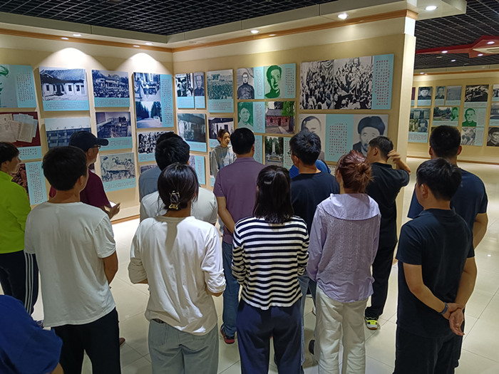 9月29日,体育学院党员代表在体育学院党委书记的带领下参观了宿州学院“革命传统教育馆”。参加活动的党员佩戴党员徽章,严肃认真,参观前,全体党员面对党旗举起右拳、重温入党誓词。随后讲解员在东方日出皖北觉醒、时代先锋皖北火种、星火燎原皖北风雷、民族怒涛皖北烽火、命运决战皖北硝烟和革命英烈浩气长存六个部分中,引领大家穿越时空感受到不同历史时期,全国各族人民和皖北地区人民在中国共产党领导下为国家独立,民族解放和人民幸福所进行的艰难卓绝、前赴后继、气壮山河的斗争历程。