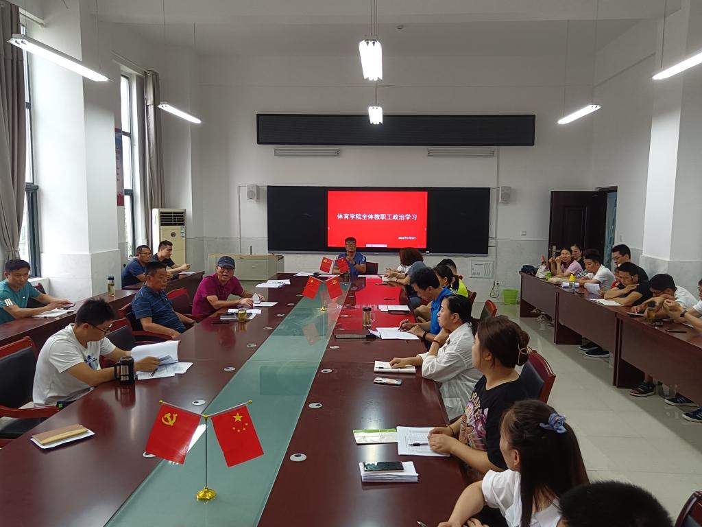7月6日,体育学院党委组织召开全体教职工集中学习,体育学院党委书记宋红军主持,全体教职工参加。