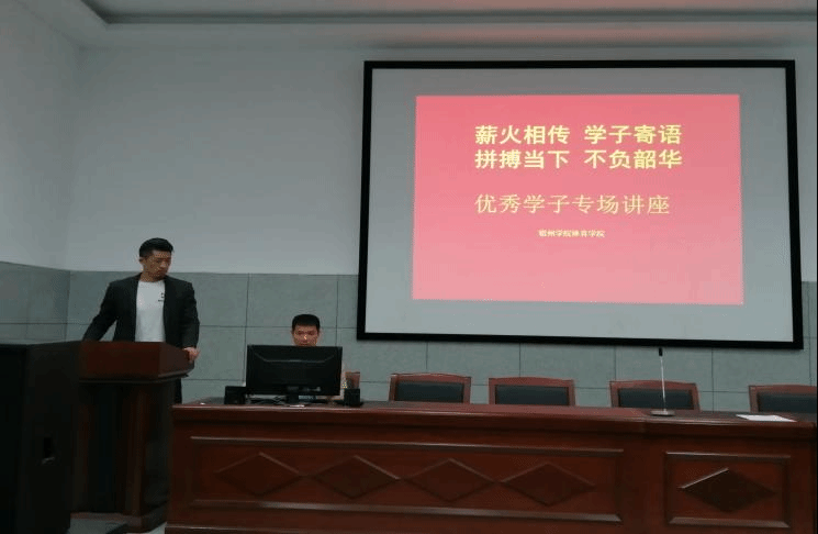 接着他以学长的身份给学弟学妹们分享了他的学习和工作经验。一是待人处事,和蔼友善。君子之交淡如水。在家靠亲人,外出靠朋友。始终秉承着,待人友善的态度处理人际关系。二是对待工作要勤劳、勇敢。天道酬勤,相信勤能补拙。在单位或者公司工作,一定要敢于担当,勇于承担。三要多读书,博学、努力。读史使人明智,读诗使人聪慧,演算使人精密,哲理使人深刻,道德使人有修养,逻辑修辞使人善辩。最后生活上一定要爱惜自己。不管何时,遇到任何的困难,都要记住爱护好自己。只有自己健康,强壮,一切就有机会。我们不仅要有强壮的身体,更要有强大的内心。