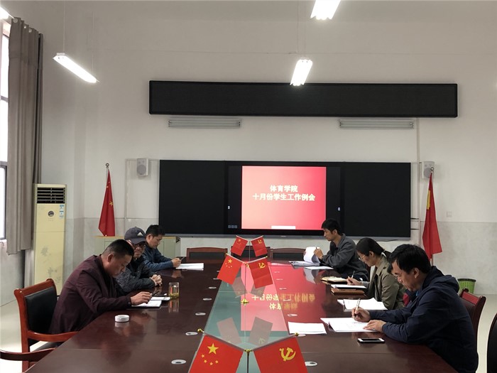 为落实近期学生工作重点和学校有关会议精神, 10月29日,体育学院党总支组织召开学生工作例会,党总支书记宋红军主持,院长徐连军、副院长白明、团总支书记及全体辅导员参加。