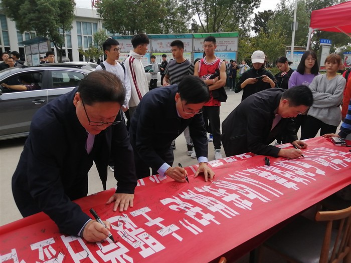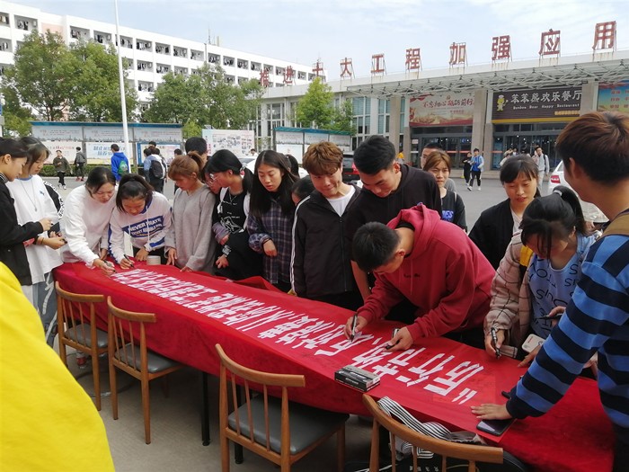 本次活动还得到了学校领导和各个部门的支持,校党委副书记蔡之让、工会主席王勇、国有资产管理处处长芦苇等广大师生都纷纷在签名横幅上签下了自己的名字。
