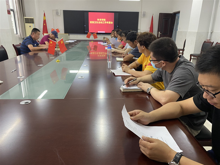 为贯彻校宣传部《关于开展爱国卫生运动督查工作的通知》文件精神,进一步营造整洁、优美、卫生的校园环境,以崭新的校园面貌迎接2020级新生。9月14日,体育学院党总支组织召开爱国卫生运动工作布置会,体育学院党总支书记宋红军主持,党总支委员、党支部书记、科级干部和班主任辅导员参加。