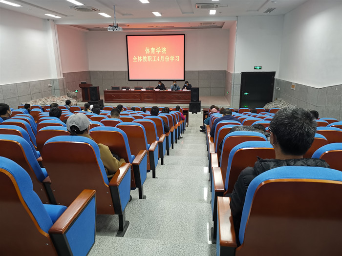 4月13日,体育学院党总支组织召开4月份全体教职工学习,党总支副书记、副院长白明同志主持,全体教职工参加。
