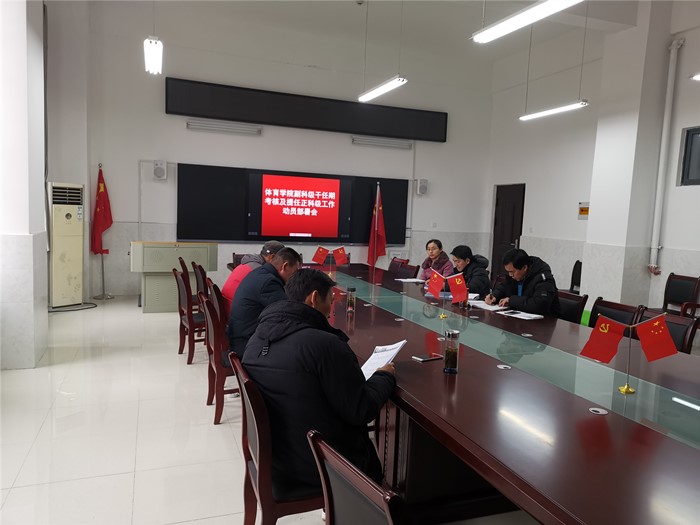 为政之要,惟在得人。全面推进体育学院发展,关键在于建设一支高素质教师干部队伍。围绕打造一支高素质干部队伍的目标,按照校《关于对部分副科级干部进行任期考核及提任正科级工作的通知》文件精神,2020年1月14日至16日体育学院党总支组织开展了体育学院开展副科级干部任期考核及提任正科级相关工作。