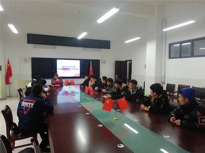 为贯彻落实《中共中央、国务院关于全面深化新时代教师队伍建设改革的意见》精神,切实加强教师师德建设,根据《宿州学院师德年度评议办法》文件(党教工字〔2019〕1号)和宿州学院《关于开展2019年师德年度评议工作的通知》精神要求,体育学院于2020年1月7日在体育馆107会议室开展了“2019学年师德师风学生测评活动”。体育学院党总支副书记(副院长)白明、党总支组织员宋荣凯和全部16个班的20名学生代表参加了此次测评活动。