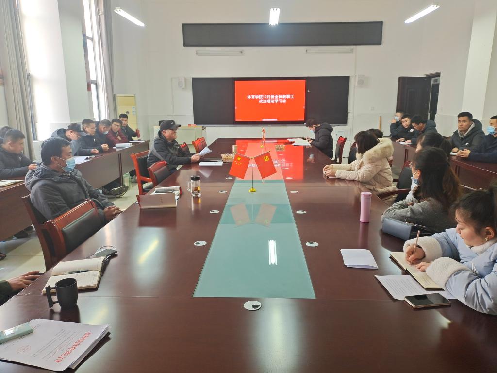 2021年12月20日中午,体育学院开展12月份全体教职工政治理论学习会和全体党员政治理论学习会。学习会由白明主持。