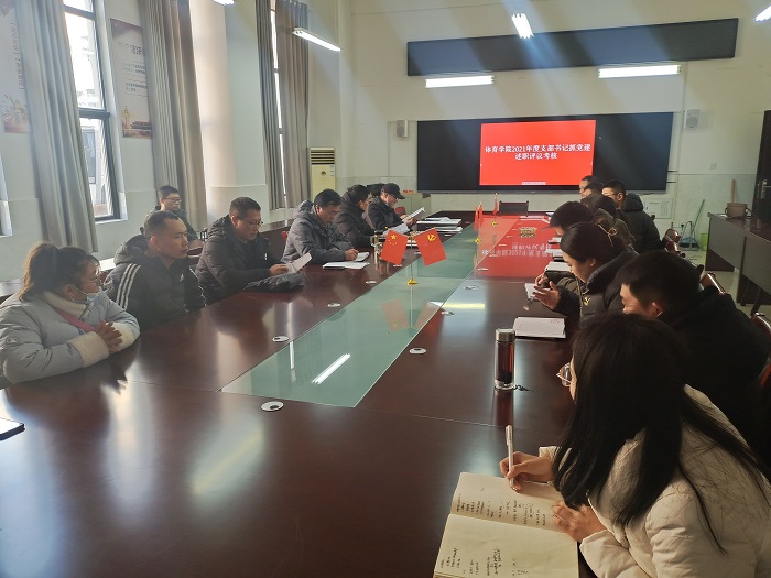2021年12月31日上午,体育学院党委召开2021年度党支部书记抓党建述职评议会,全体党委委员、党支部支委成员参加述职评议会。述职评议会由党委书记李高主持。