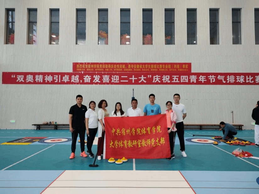为深入学习贯彻习近平总书记在北京冬奥会、冬残奥会总结表彰大会上的重要讲话精神,丰富教职工业余文化生活,提高教师身体素质,增强集体意识和团结协作精神,2022年5月4日,大学体育教研室教师党支部开展了五四青年节气排球、冰壶比赛。