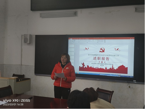 2023年3月1日下午,体育学院召开2022年度党支部书记抓党建述职评议考核工作会议。体育学院全体科级以上干部,党支部书记、支委委员、纪委委员,教研室主任、副主任,辅导员、工会同志出席会议。会议由体育学院党委书记李高主持。