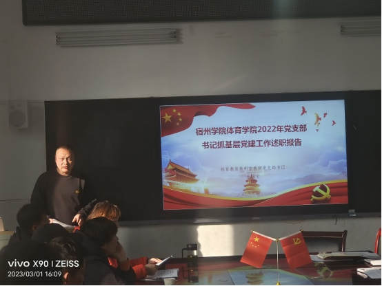 此次述职评议考核对象为体育学院5位党支部书记,述职采用现场述职的形式。在述职中,支部书记聚焦全面从严治党,以加强党的各项建设、全面提升基层党组织组织力、全面促进党支部“七个有力”战斗堡垒作用和党员的先锋模范作用为重点,结合工作实际,对2022年度的履职工作情况进行了汇报,对存在问题及原因进行了深入分析,并提出了下一步工作思路和措施。