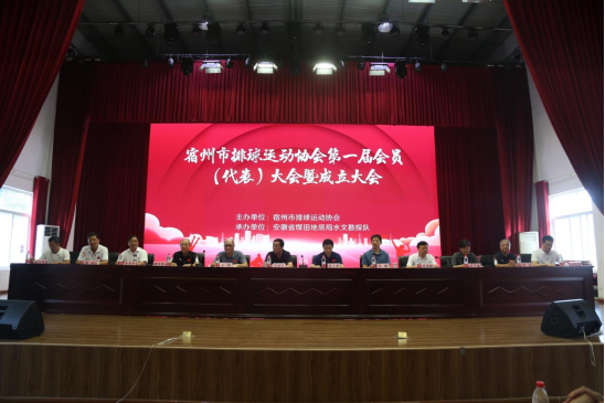 8月6日,宿州市排球运动协会第一届会员(代表)大会暨成立大会在安徽省煤田地质局水文勘探队举行。安徽省排球协会会长张颂元,市民政局党组成员、副局长纵文华,宿州学院体育学院院长、党委副书记白明,市社会组织管理局局长李鹏,水文队党委副书记、副队长秦福刚,市教体局群体科科长程克喜,宿州市排球运动协会筹备工作组组长、宿州学院体育学院赵凯军,宿州市部分中学和银行系统领导,以及80余名会员代表出席了大会仪式。