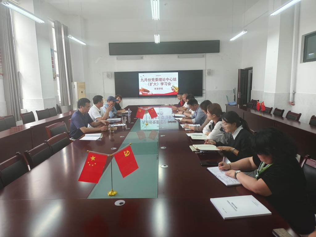 2023年9月27日中午,体育学院召开九月份党委理论学习中心组(扩大)学习会,体育学院全体科级以上干部、党支部书记、教研室主任参加学习会。学习会由李高主持。