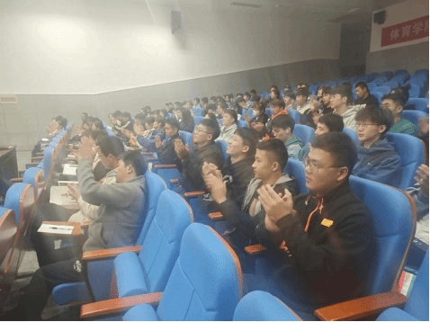 2023年4月19日中午,院党委委员、副院长李亮在体育学院报告厅为体育学院2020级体育教育专业学生上“深入学习贯彻习近平新时代中国特色社会主义思想,把握‘六个必须坚持’对高校学生的指导意义”专题思政课。