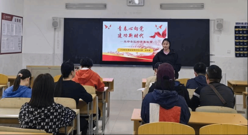 4月26日中午1点,大学体育教研室教师党支部书记涂芙蓉讲授《青春心向党 建功新时代》党课,党支部全体党员参加此次党课学习。