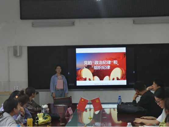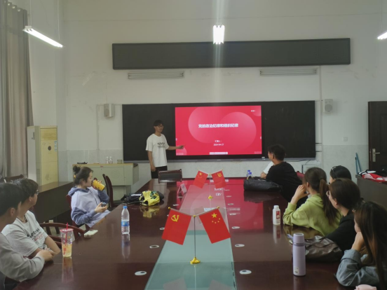 在活动中刘天行领学了新修订的《中国共产党纪律处分条例》第二编第八章、第九章;全体党员、发展对象在前期以小组为单位围绕党的“政治纪律”、“组织纪律”开展组内交流的基础上,每个小组安排一名同学进行了交流发言。