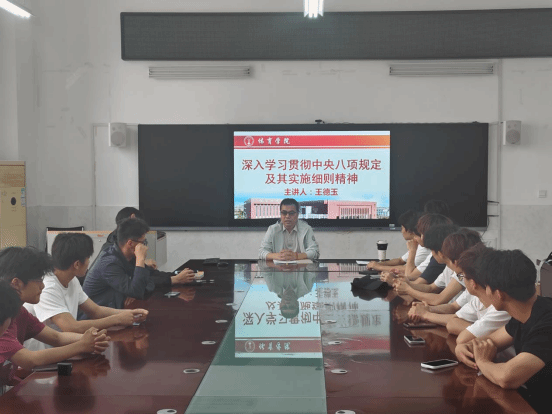4月29日下午,体育学院党委副书记、纪委书记讲授了《深入学习贯彻中央八项规定及其实施细则精神》专题党课,结合深入贯彻中央八项规定精神学习教育要求,对学生进行了党纪学习教育;体育学院体育教育专业学生党支部书记田慧丽为学生细致讲解了《中国共产党章程》,让学生逐字逐句、学细学深了党章精神。集中学习后,全体学员集体参观学习马克思主义学院智慧思政馆。