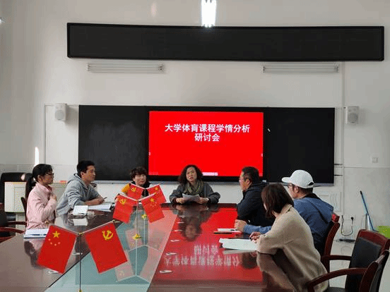 为推进“以更高标准、更大力度、更实举措做好新时代人才工作”,了解大学体育课程实际现状、提升大学体育课程质量,11月10日14:00,体育学院大学体育教研室在会议室召开大学体育课程学情分析研讨会,学院副院长陈芳芳和大学体育教研室教师参加了会议。会议由大学体育教研室主任刘娟主持。