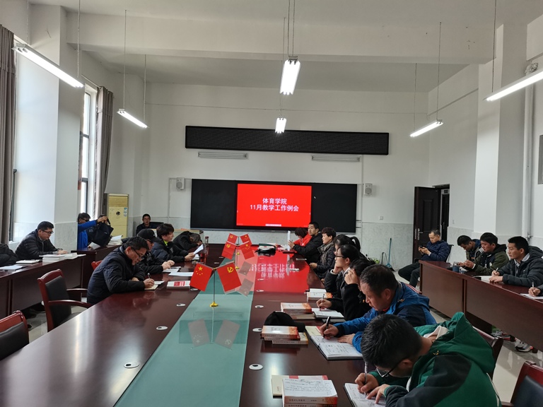 2021年11月10日,体育学院在体育馆会议室召开11月教学例会,会议由院长白明,副院长陈芳芳主持,全体教职工参加会议。