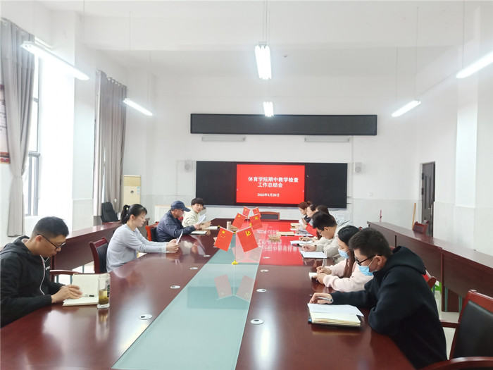 为加强教学质量监控,畅通教学反馈渠道,2022年4月29日下午,体育学院在A104会议室召开了本学期期中教学检查“院级自查”及“学校抽查”情况总结会。会议由副院长陈芳芳主持,党委副书记、院长白明、院督导组成员、教研室主任、实习实训中心主任、教学秘书、教务员以及参与现场检查的相关负责老师参加了本次会议。