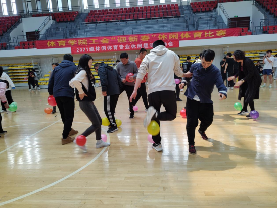 为丰富教研室活动,为紧张的工作减轻负担,让老师们的校园生活更加轻松愉快。4月14日,大学体育教研室在篮球馆举办了一场别开生面的趣味活动——踩气球比赛,这场活动使篮球馆里的“热浪”根本停不下来。