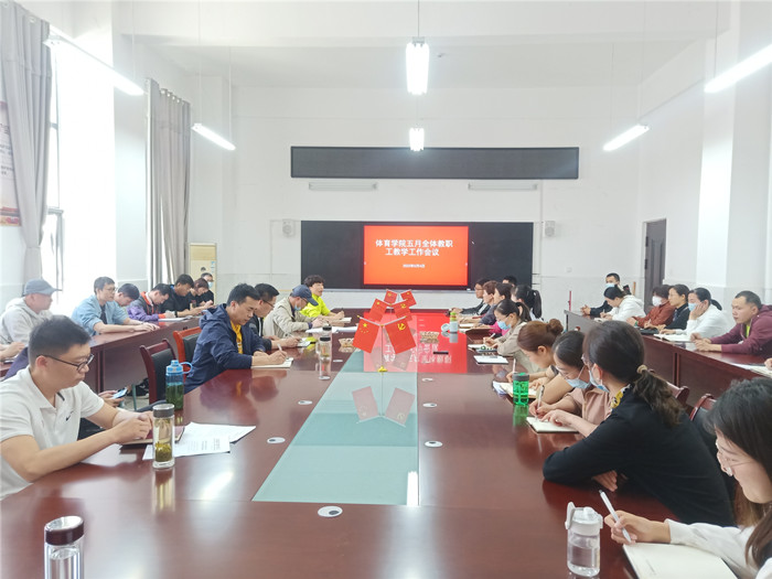2022年5月4日中午,体育学院召开5月份教学工作例会,会议由党委副书记、院长白明主持,党委书记李高、党委副书记王德玉、教学副院长陈芳芳及体育学院全体教职工参加。
