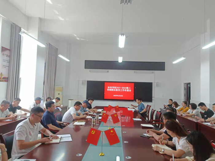 为加强学风建设,严肃学院考风考纪,确保教学质量,同时部署好我院临近期末的相关工作,5月25日中午,体育学院在104会议室召开了2021-2022学年度第二学期期末教学工作布置会,参加此次会议的人员有党委书记李高,院长白明,党委副书记王德玉及全体教职员工,会议由教学副院长陈芳芳主持。