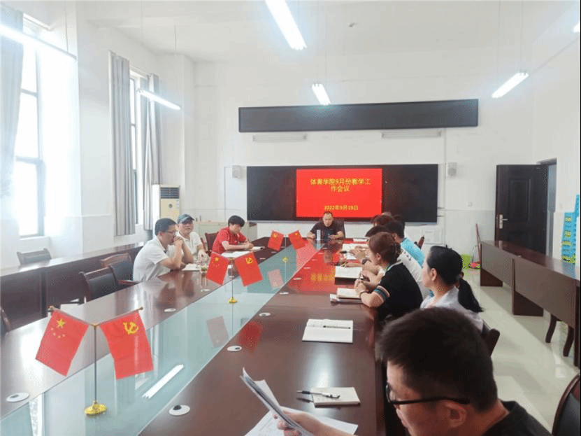 2022年9月19日中午,体育学院于会议室A104召开9月份教学工作会议,党委书记李高、党委副书记、院长白明、教学副院陈芳芳及各教研室教师参加,会议由陈芳芳主持。