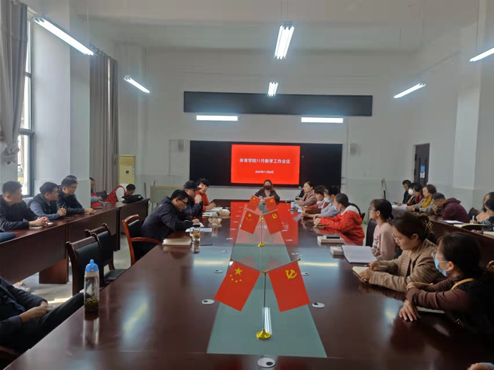2022年11月8日中午,体育学院召开11月份教学工作例会,会议由党委副书记、院长白明主持,党委书记李高、党委副书记王德玉、教学副院长陈芳芳及全体教职工参加。