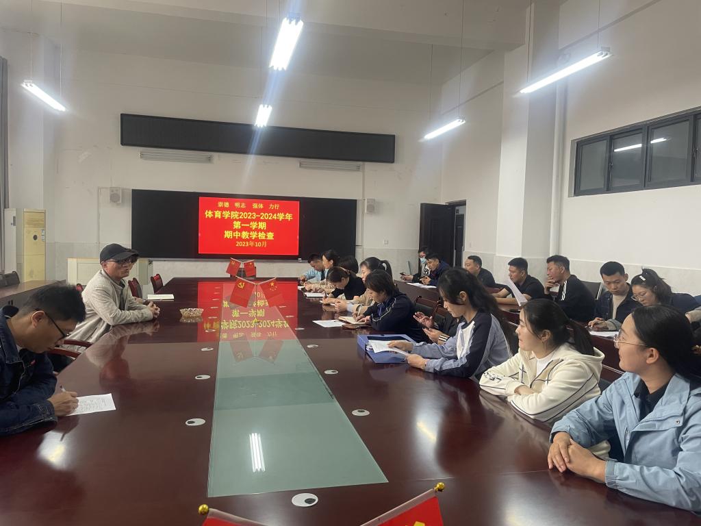 进一步加强教学管理,提高教学质量,根据学校《关于开展2023-2024学年第一学期期中教学检查工作的通知》有关要求,体育学院于2023年10月27日中午12:00,在体育学院会议室召开了第一学期期中教学检查工作会议。体育学院党委副书记、院长白明,教学副院长陈芳芳及各检查小组成员参加会议。会议由体育学院党委副书记、院长白明主持。