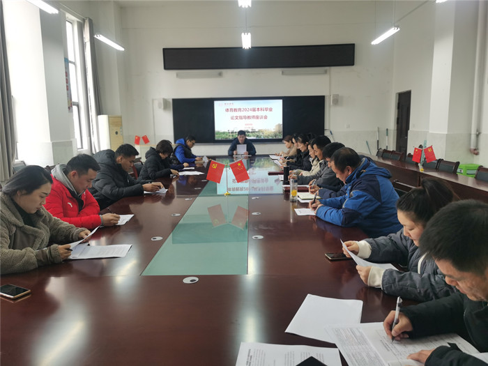 为进一步强化毕业论文(设计)过程管理,保障毕业论文工作规范有序开展,3月7日,体育教育教研室召开本科毕业论文指导教师座谈会。会议由教研室主任徐光辉主持,体育教育专业本科毕业论文指导教师参加会议。