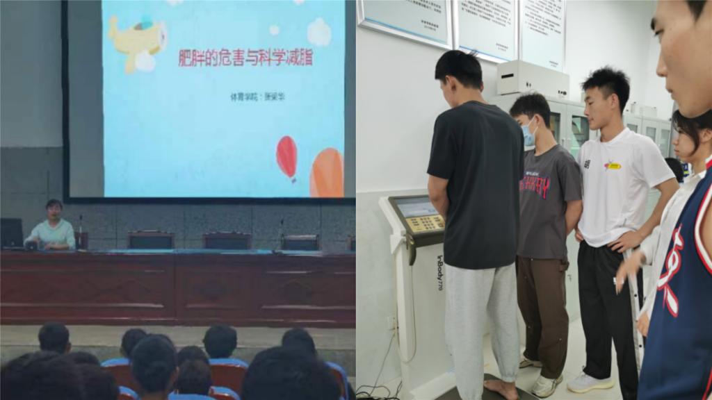 接下来,宿州市科普志愿服务专家体育学院副教授张荣华做了题为“肥胖的危害与科学减脂”的报告,肥胖是脂肪在体内积累过多的表现,它是一种普遍存在的严重危害人类健康的疾病,本次讲座围绕身体成分,肥胖的危害及其形成机制、肥胖的检测手段以及运动减肥展开,结合数据、图片讲解,通俗易懂。理论讲解之后带领学生到实验室进行身体成分的检测,通过检测同学们获得了身体的肌肉量、脂肪量,体重控制的目标数据。