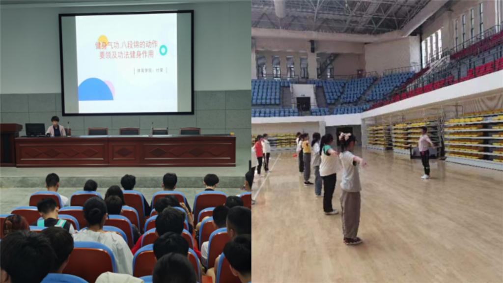 首先,宿州市科普志愿服务专家体育学院副教授付荣做了题为“健身气功.八段锦的动作要领及功法健身作用”的讲座,付荣讲到健身气功八段锦是对传统优秀文化的继承和发展,是在传统养生功法的基础上依据传统健身养生理论和现代健身理论经过多次验证而创编的新的健身养生气功功法。“八段锦”功法养生理论是传统养生文化的再结晶。她从健身气功八段锦的健身养生价值入手,讲解了新编创的健身气功八段锦的历史考究、功法特点、理论体系;对健身气功八段锦的养生价值进行分析,说明健身气功八段锦的健身养生机理,随后又带领学生进行了导引养生功十二法的动作实践练习,激发起更多大学生的学习兴趣。通过此次讲座推动了健身气功在大学生健身养生方面的推广与普及,使之成为大学生健康的“惠民工程”。
