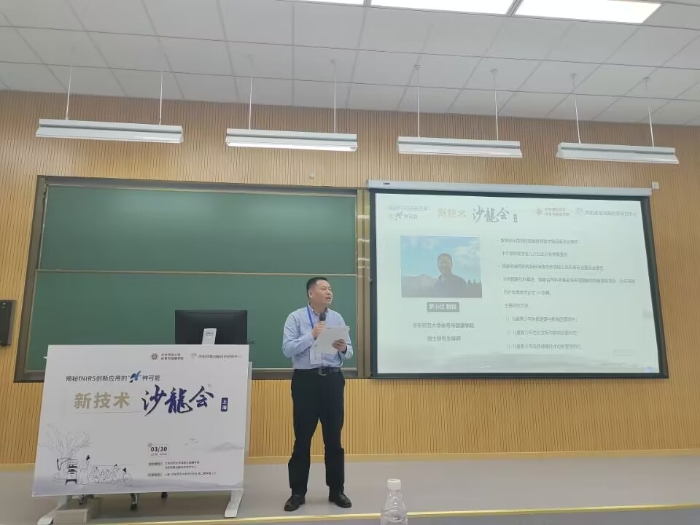 之后,由慧创医疗学术总监梁航带来了《fNIRS创新应用的N种可能——新技术沙龙会》专题分享。展示了fNIRS在体育、心理、中医、神经调控等领域的深度应用及产出成果。此次报告也为我校体育专业在fNIRS与体育领域结合的科研方向带来了新的思路与启示。