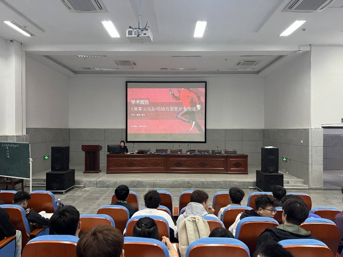 为帮助学生树立正确的大体育观、激发学生深入了解、全面传承、自觉弘扬中国体育精神的热情,2024年10月8日,体育学院在体育馆报告厅举办了由体育学院教师蒋励博士主讲的 “体育文化如何助力国家形象塑造”学术讲座。