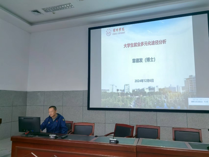 为全面贯彻落实习近平总书记关于教育的重要论述及全国教育大会精神,培养和提升大学生的创造精神、创新意识和创业能力,加强学校体育与创新创业教育的有机融合,2024年12月6日体育学院章德发博士于体育学院报告厅为宿州学院学生开展了“大学生就业多元化途径分析”的讲座。
