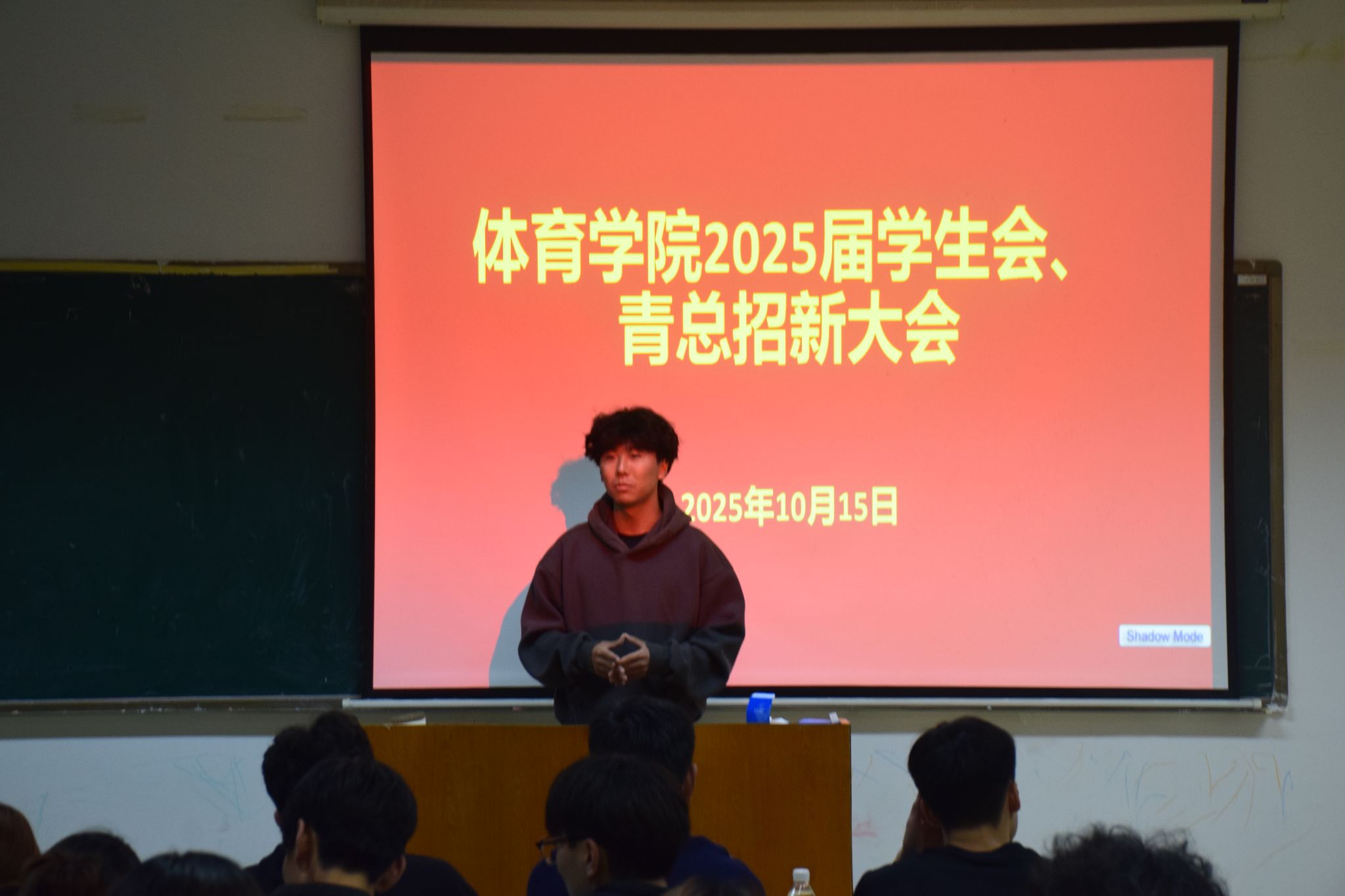 为充实学生组织力量,搭建青年成长平台。体育学院于2025年10月15日晚上7点在体育楼A114召开体育学院2025届学生会、青总组织招新大会。出席本次会议的有体育学院团委书记胡杰、学生会及青总主席团成员、各部门部长。2025级新生积极参与,共赴这场青春之约。