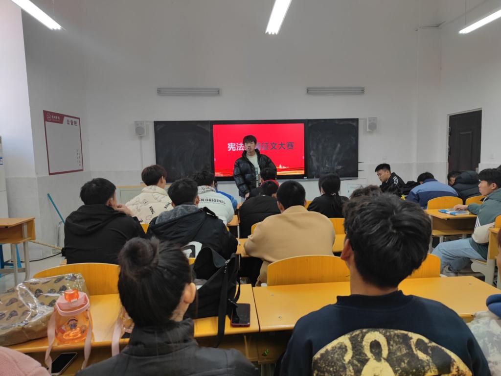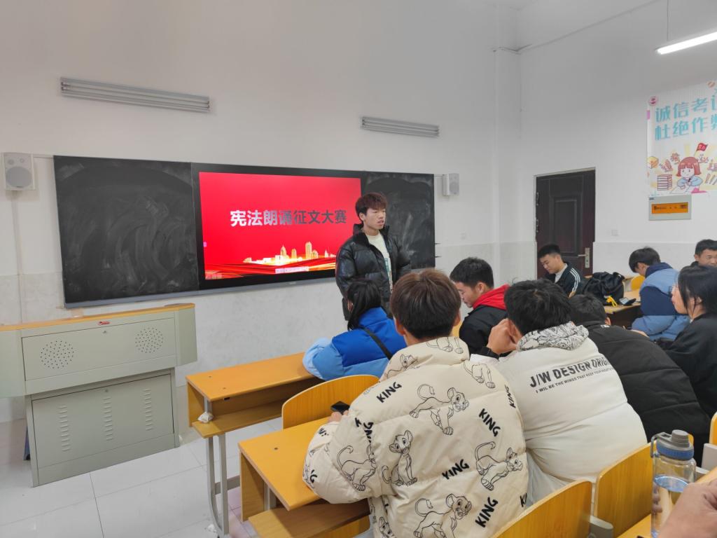 比赛围绕“学宪法讲宪法"内容展开,参赛选手们结合自身实际和现实情境用饱满激情的语言讲出自己对宪法的认识,并充分表达了自己对宪法的理解和情感,同时参赛选手也向现场所有同学发出倡议:从自己做起,从身边小事做起,自觉做到学法、知法、守法、用法,做推广宪法、遵守宪法的小主人。比赛的最后所有参赛选手都朗诵完毕,由学生会主席团进行评选,获得一等奖的是姚程,获得二等奖的是沈娟、程宇悦,获得三等奖的是齐琴、胡亚军和王接整。