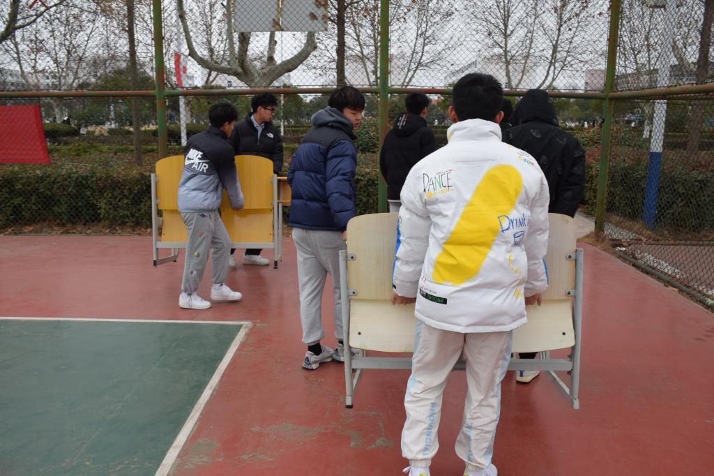活动开始,由王艳丽进行任务分配,将干事成员分为两组,一组成员检查室外设施是否完整并打扫卫生,另一组把闲置在室外的桌椅搬至体育楼。大家接到任务后,迅速投入到工作中,一组的人分工明确,在操场,篮球场,排球场等场地来回穿梭,他们仔细的检查现场的设施是否有损坏,并及时的清理垃圾。二组的人寻找室外闲置的桌椅,负责将其搬运回体育楼。尽管天气寒冷,但大家依旧干的热火朝天,彰显了体育学院学生积极向上的工作态度。体育学院室外体育设施也得到了有效的维护。在大家的共同努力下,也是圆满的完成了任务。活动最后大家合影留念。