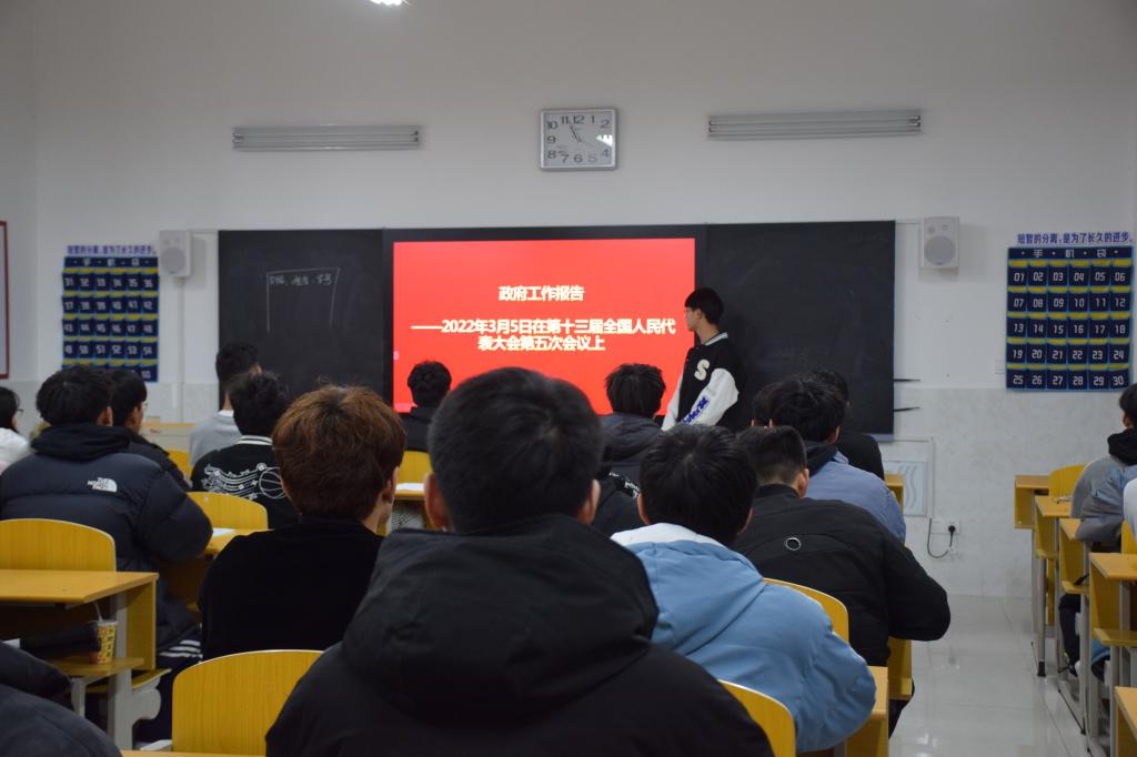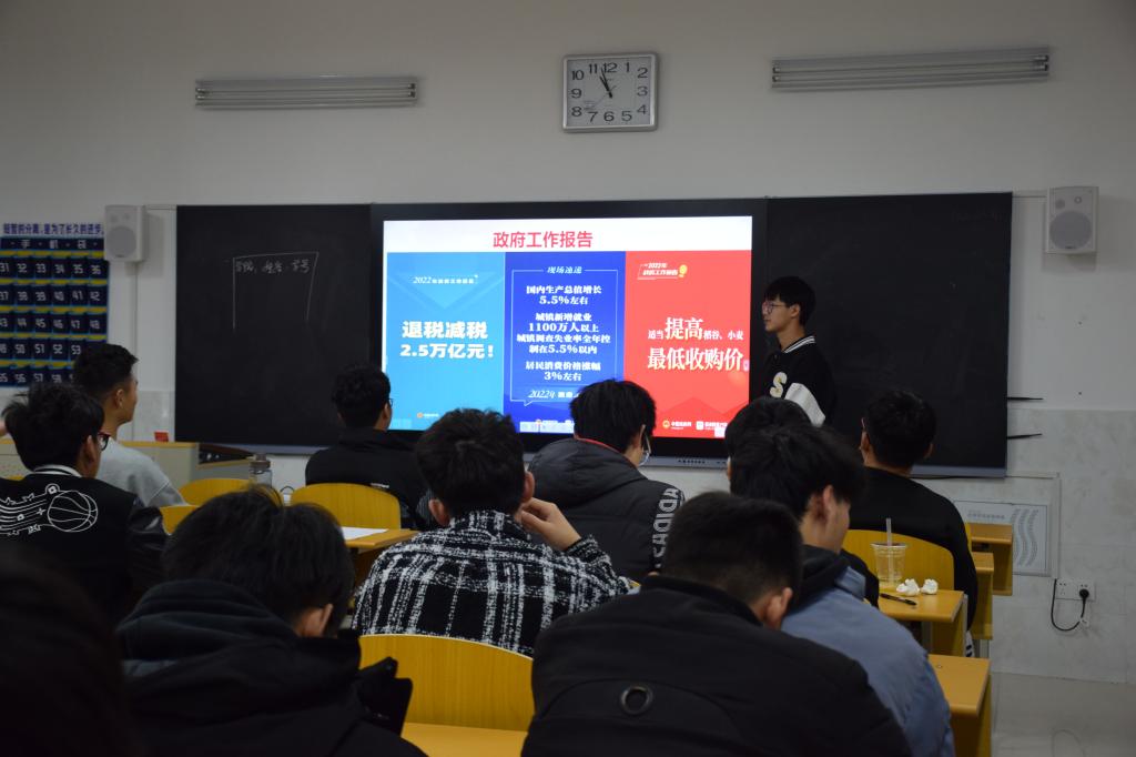 讲座上,柏军豪首先给全体成员普及了往年两会会议的主要内容和政府工作报告;接着组织到场人员观看两会相关视频;随后将《政府工作报告》中的几大重点内容进行了详细地解读,给全体人员讲解了今年两会会议的主要内容和政府工作报告及其重要含义。整场讲座目标明确、形式新颖、内容丰富、并开展适时的互动和交流,对帮助学生深刻理解当前和准确把握“两会”精神实质,充分认清当前形势和任务有着重要的指导意义。