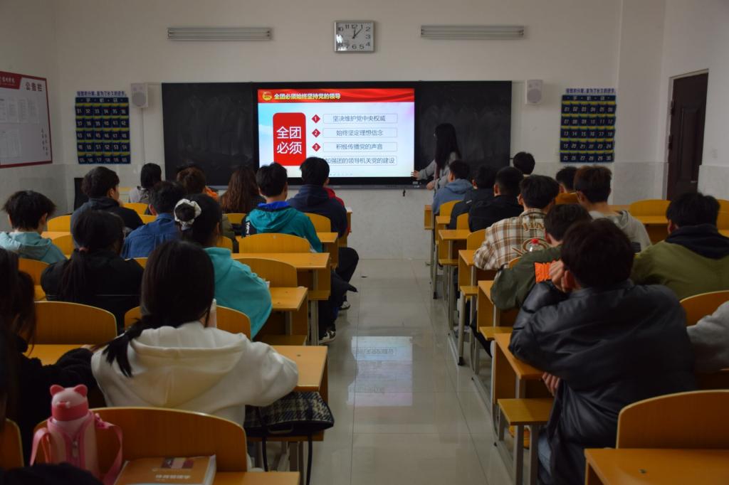 推进从严治团,凝聚青春力量。为了巩固和扩大党执政的青年群众基础,引领广大青年紧跟着党走在时代前列,体育学院于2021年10月15日中午12点在体育学院新馆a109开展“不忘初心、牢记使命、从严治团”微团课。参加讲座的有体育学院学生会全体成员和青年志愿服务总队全体成员。
