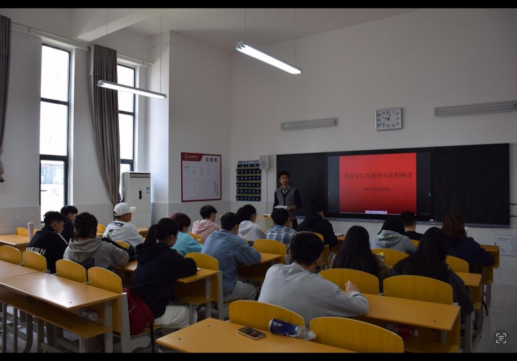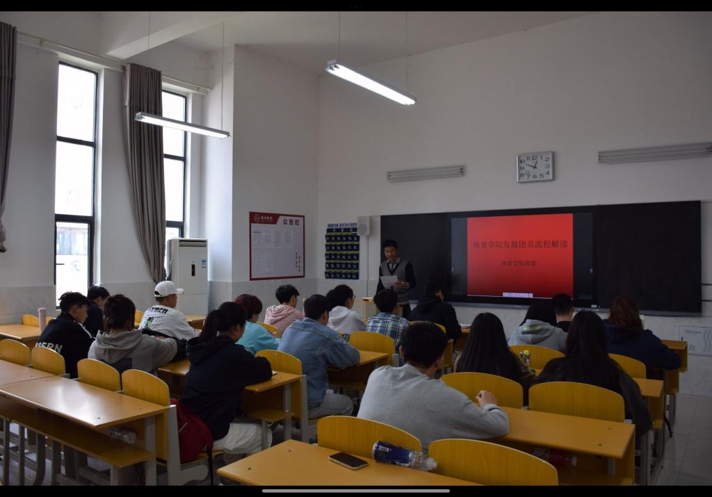 为更好的壮大团员青年队伍,团结和引领广大青年奋发向上。体育学院于2022年4月6日13点在体育学院A109教室进行发展团员流程解读会议。参加本次会议的有体育学院团委书记胡杰老师,团委副书记王飞、彭舒灿,以及各班级团支部书记。
