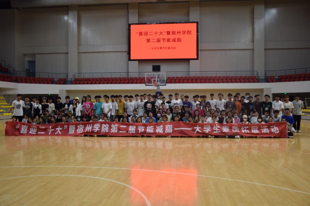 为团结引领广大团员青年坚定跟党走,提高大学生的身心素质,丰富大学生的课余生活,增强组织沟通及团结合作的能力,增进彼此的沟通和友谊,宿州学院体育学院学生会于2022年5月21日下午3点在体育学院篮球馆举办“喜迎二十大”暨宿州学院第二届节能减脂活动,由体育学院学生会主席团主持,体育学院学生会全体人员以及各二级学院参赛人员参加。