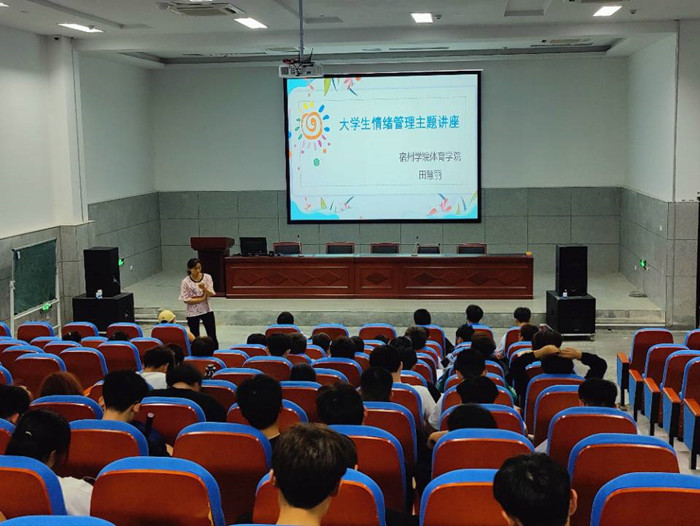 为了提高体育学院学生的情绪管理能力,5月25日体育学院在体育馆报告厅举办大学生情绪管理主题讲座,体育学院心理辅导员田慧丽老师主讲,体育学院全体学生参与。
