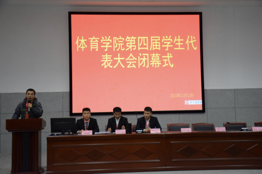 大会经过全体代表共同努力,圆满完成预定的各项任务,王德玉致闭幕词,他首先对参与筹备会议的全体工作人员和各位学生代表表示衷心感谢。他表示,此次大会是在全国学习、宣传、贯彻党的二十大精神的重要时间节点召开的一次大会,是我院党委贯彻党的二十大精神的生动实践。他强调,青年学子要牢记习近平总书记的谆谆教诲:“坚定不移听党话、跟党走,怀抱梦想又脚踏实地,敢想敢为又善作善成,立志做有理想、敢担当、能吃苦、肯奋斗的新时代好青年”。希望大家牢记自己的责任,充分发挥自身优势,勇于创新,团结和带领全院广大学生,在体育学院党委、分团委的领导下,刻苦学习,努力实践,锐意进取,把我院学生工作完成得更加出色,不辜负全院同学对你们的期望与信任,为自己的大学时代留下一段闪光的回忆!