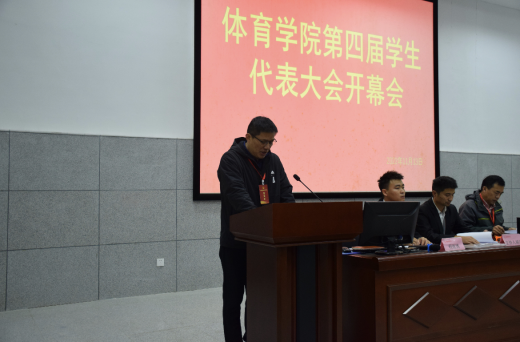 会议在神圣庄严的国歌声中隆重开幕,会议伊始,胡杰老师向大会报告学代会筹备工作情况,首先由李高致开幕词,他指出这是体育学院学生政治生活中的一件大事,也是体育学院的一件大事,代表体育学院党委、行政,向大会的召开表示热烈的祝贺!他在致辞中对体育学院学生会组织工作给予充分肯定,并希望各位代表履行好职责,凝聚共识,汇聚力量,高质量完成各项议程,最后李高向全体学生骨干、团员和青年学生们提几点希望:希望成为有远大的理想抱负的青年;希望成为有高尚道德的青年;希望成为不畏困难、艰苦奋斗的青年;希望大家以饱满的热情和高度负责的态度,同心同德、群策群力、畅所欲言,真正完成学生代表这一身份所赋予的使命,为体育学院大家庭贡献自己的力量!