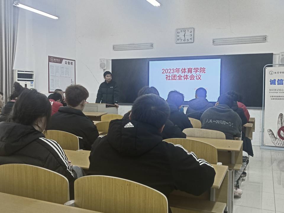 为了更好发展社团活动的开展与宣传,提高社团成员的积极性与主动性,2023年2月23日,体育学院社团第二次全体会议在体育楼A113教室召开,本次会议由胡杰老师主持,以及部分社团老师参加。