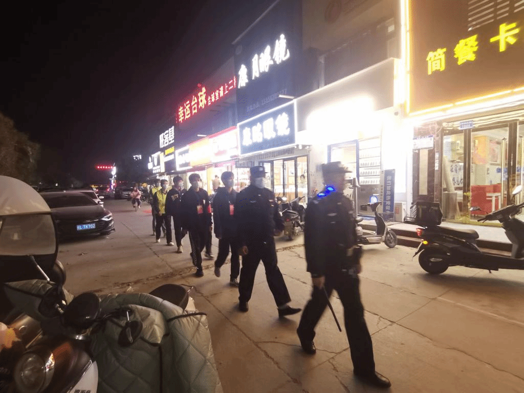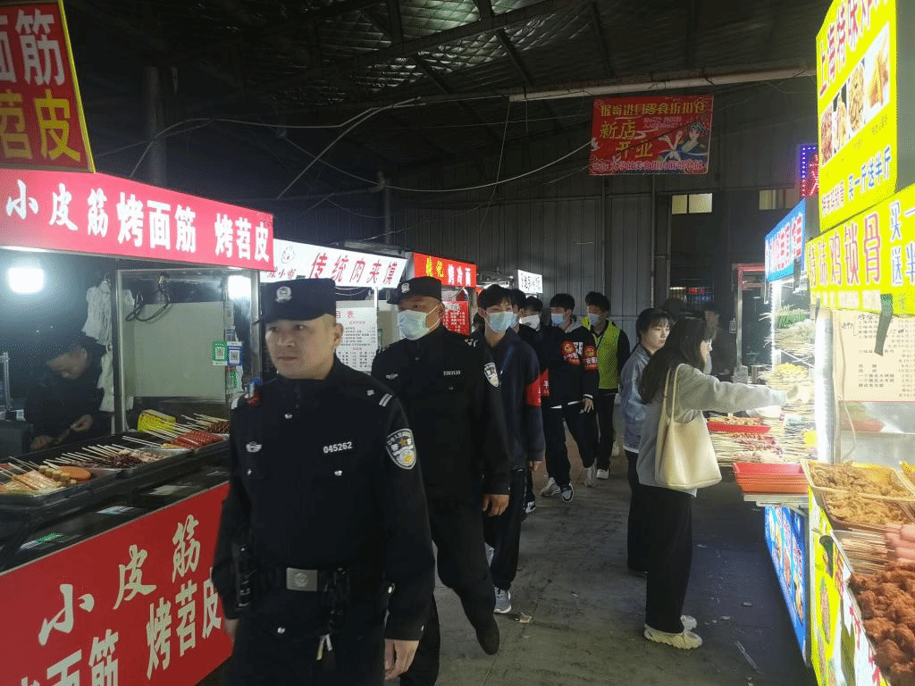 体育学院青年志愿者们与六合社区民警联系,一同对六合社区重点场所重点路段开展治安巡逻工作,如:学校附近店铺是否诚信经营、商家在交易过程中是否诚信、是否有潜在的不良行为、是否有人需要帮助等等。