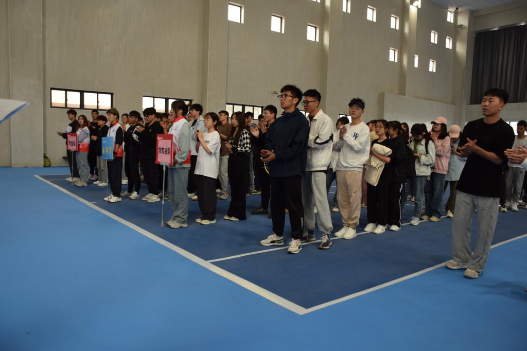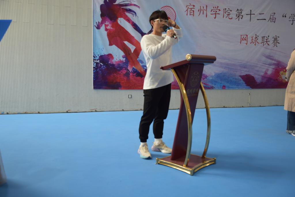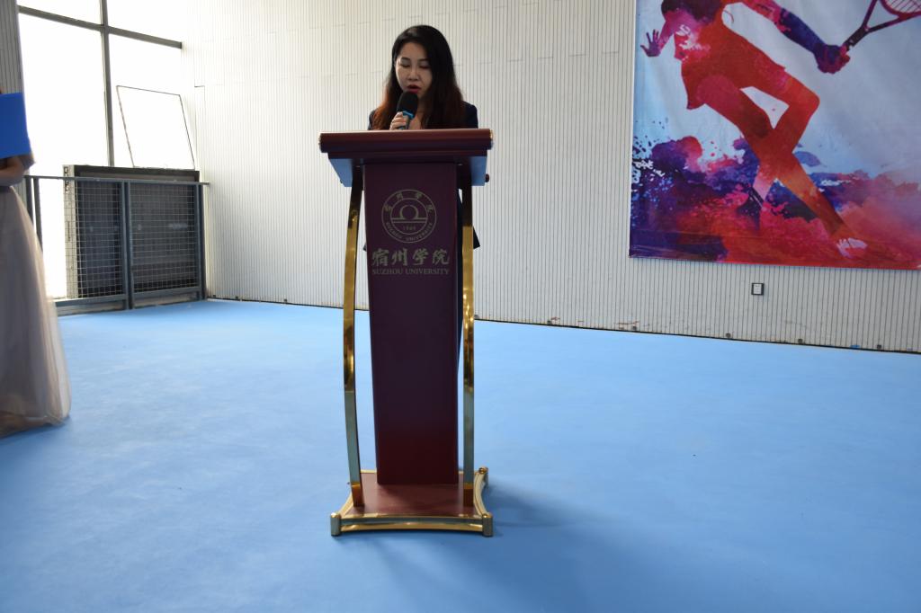 为了促进校园文化建设,丰富学生课余文化生活,提高学生的身体素质和网球专业水平。宿州学院第十二届“学海杯”网球赛开幕式于2023年5月10日在体育学院新馆网球馆举行,出席本次开幕式领导和嘉宾有宿州学院团委副书记陈宇、体育学院党委书记李高、体育学院院长白明、宿州学院组织科科长高歌、体育学院团委书记胡杰、裁判长张炳祥老师,以及各学院代表队参加本次开幕式。