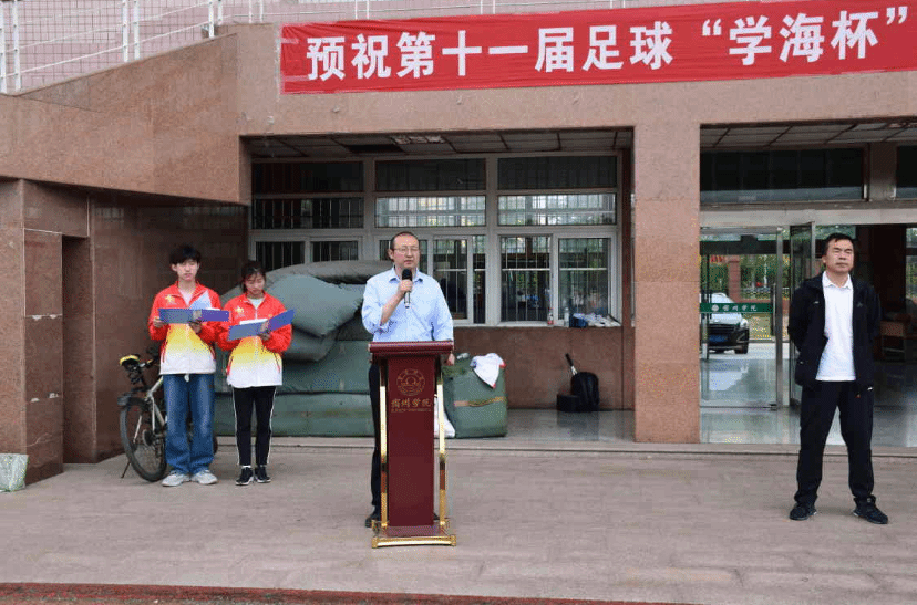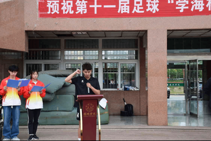 为了丰富校园文化生活,培养学生坚毅品质,提高学生心理素质和身体素质,学校同时响应“足球进校园”的号召,积极推进校园足球运动在我校广泛开展。宿州学院第十一届“学海杯”足球联赛开幕式于2023年5月24日中午12:30在体育学院田径场举行,参加本次开幕式的领导有宿州学院团委书记凌峰、体育学院院长白明、体育学院党委副书记王德玉、裁判长金国文。